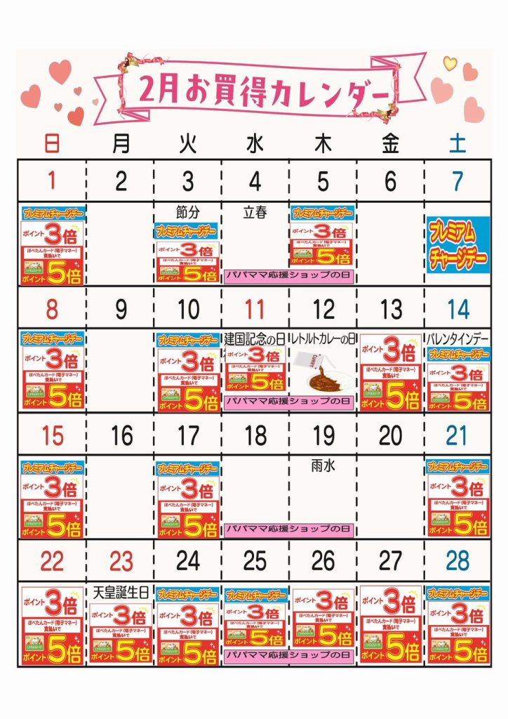 ☆2月お買得カレンダー(北本店)