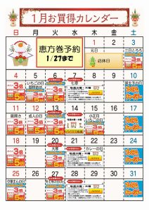 ☆1月お買得カレンダー(狭山台店)
