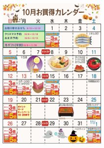 ☆10月お買得カレンダー(日野駅前店)