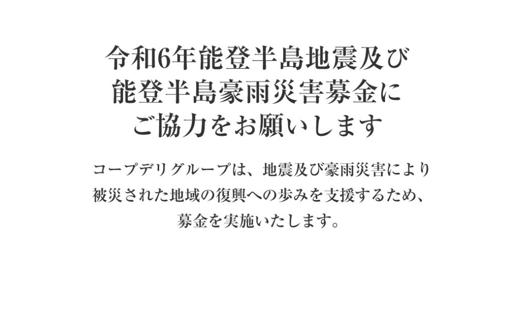 先の能登半島地震及び能登半島豪雨災害により被災された地域の復興への歩みを支援するため、募金を実施いたします。