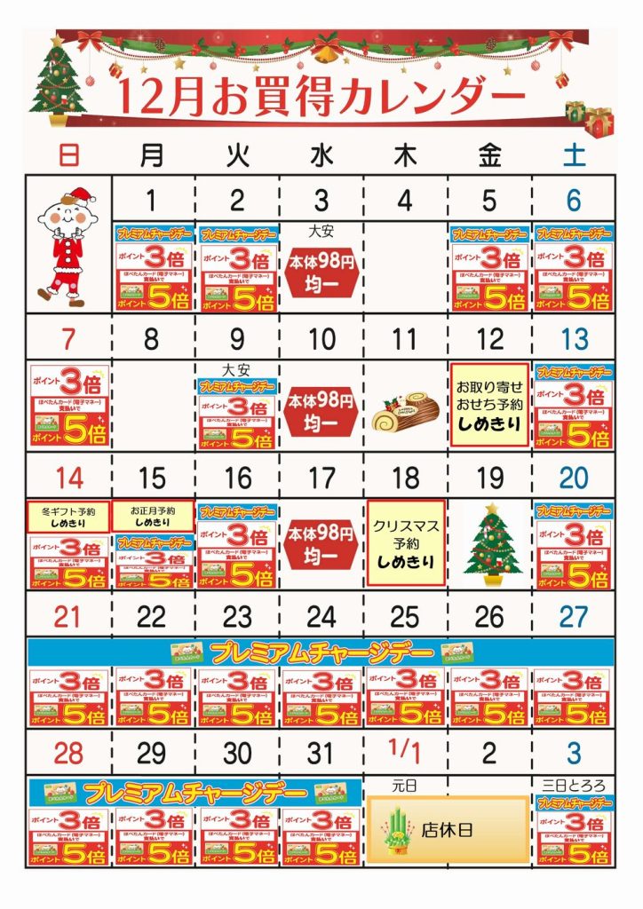 ☆12月お買い得カレンダー(弁天通り店)