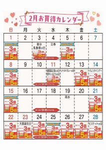 ☆2月お買得カレンダー(小金井ぬくい坂下店)