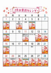 ☆コープ亀有店 2月お買い得カレンダー