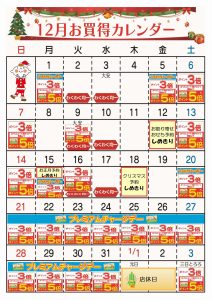 ☆12月お買得カレンダー(北野台店)