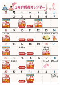 ☆3月お買得カレンダー(北野台店)