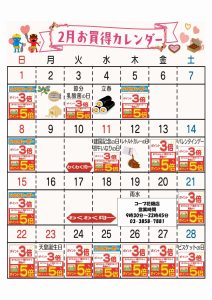 ☆2月お買得カレンダー(花畑店)
