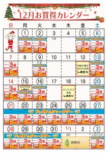 ☆12月お買得カレンダー(中野鷲宮店)