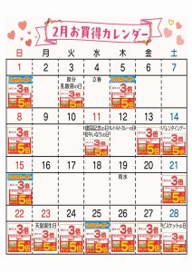2月お買得カレンダー(府中車返店)