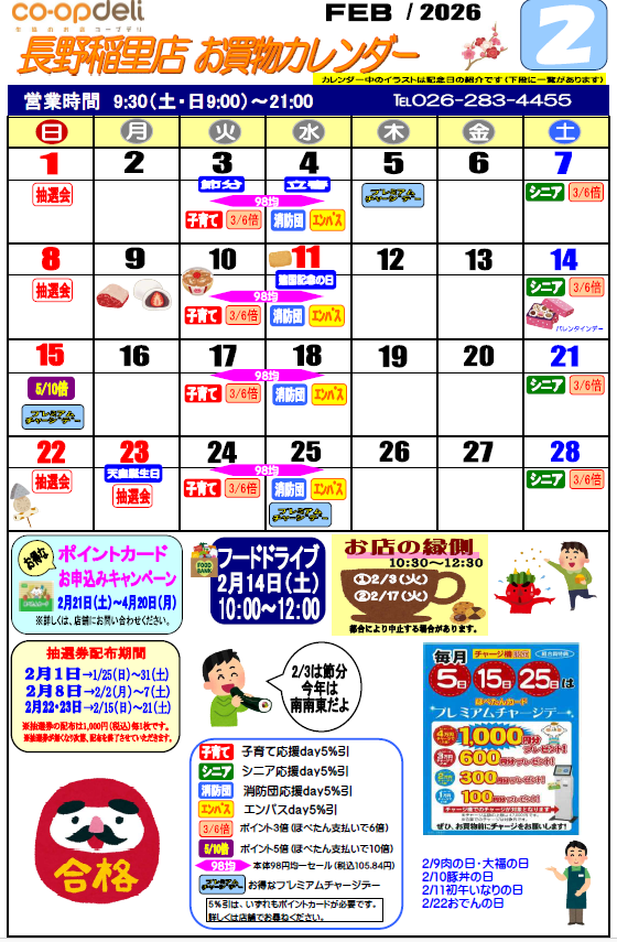 ☆2月お買物カレンダー(長野稲里店)