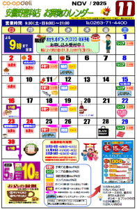 ☆11月お買物カレンダー(安曇野豊科店)