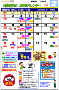 ☆2月お買物カレンダー(安曇野豊科店)